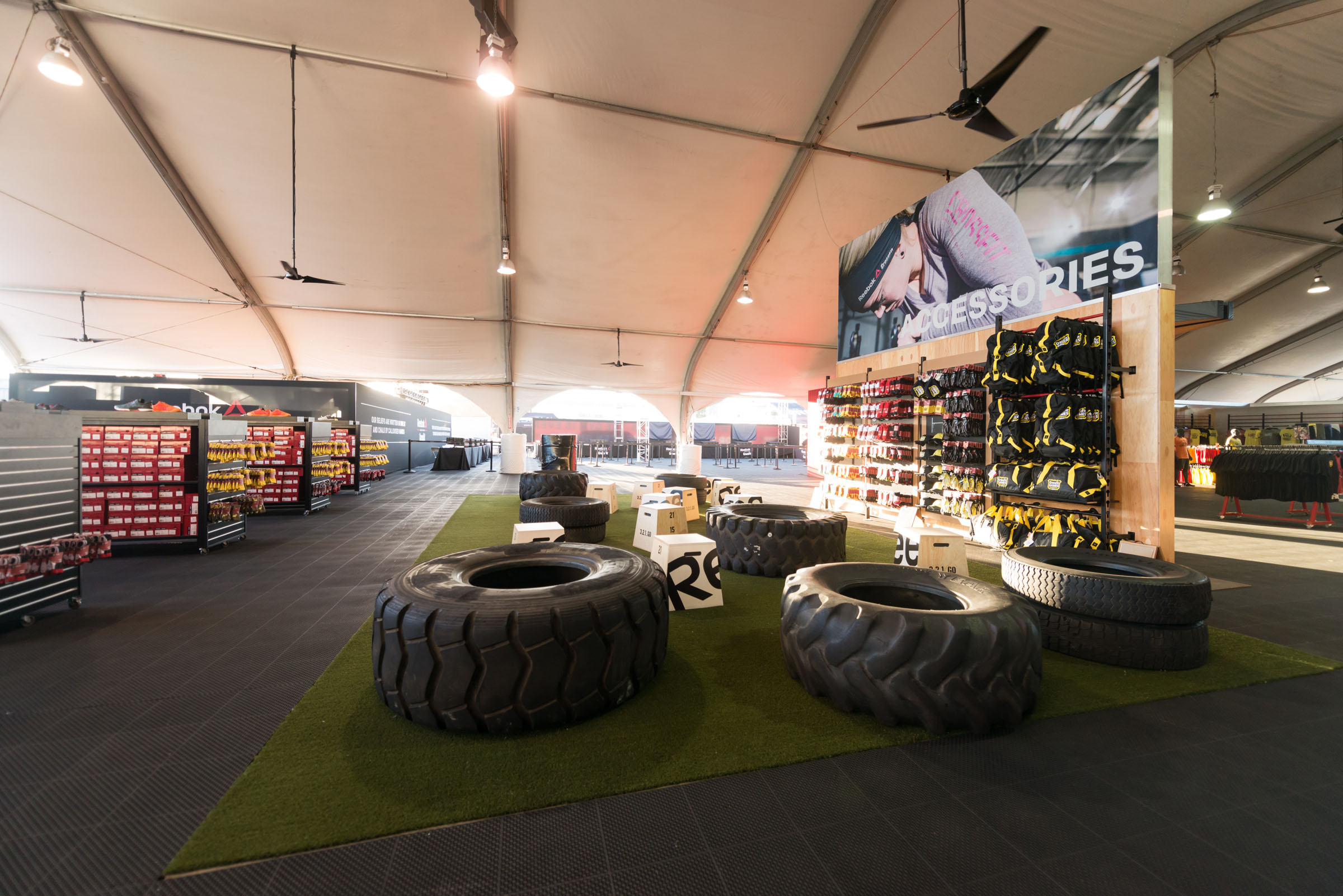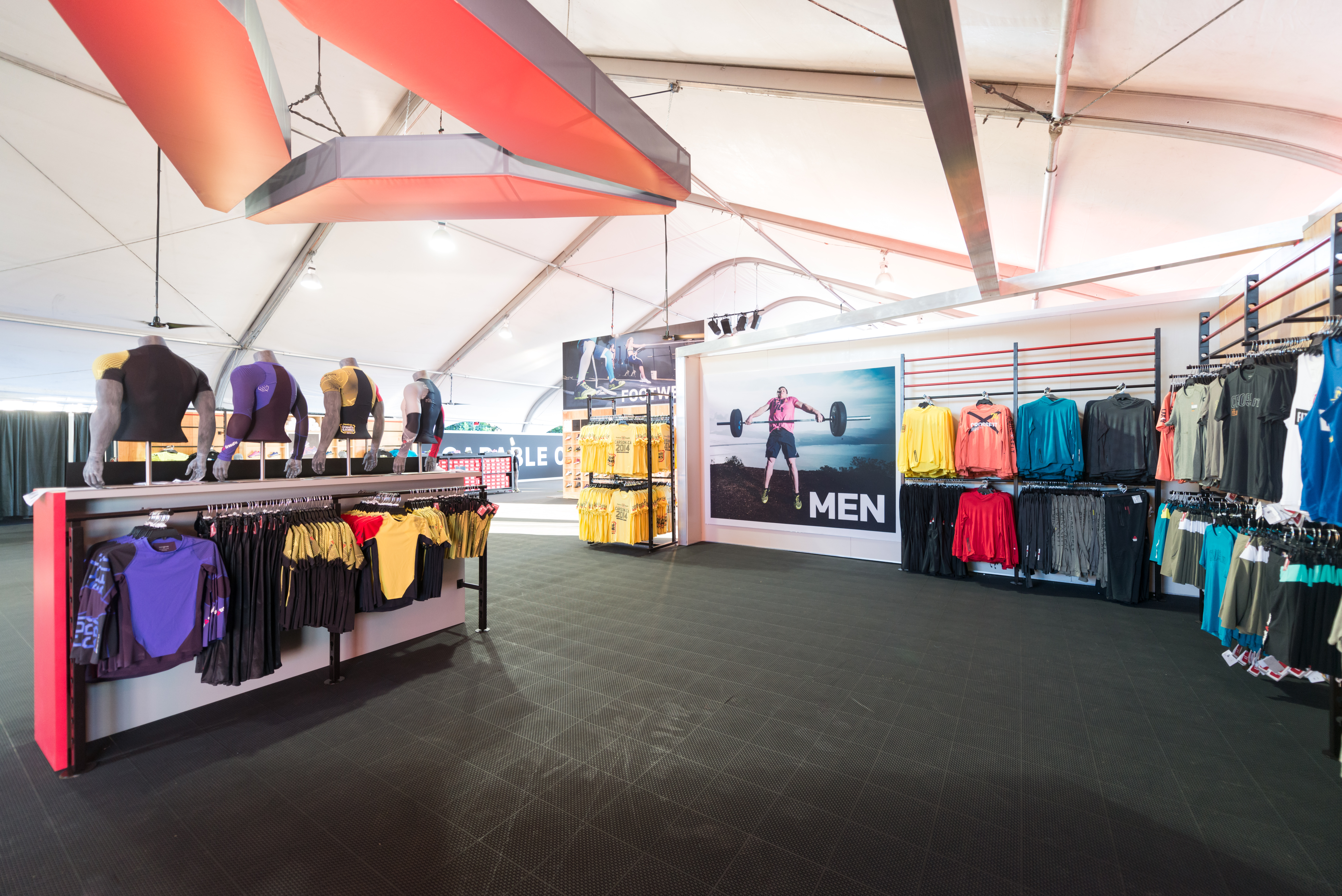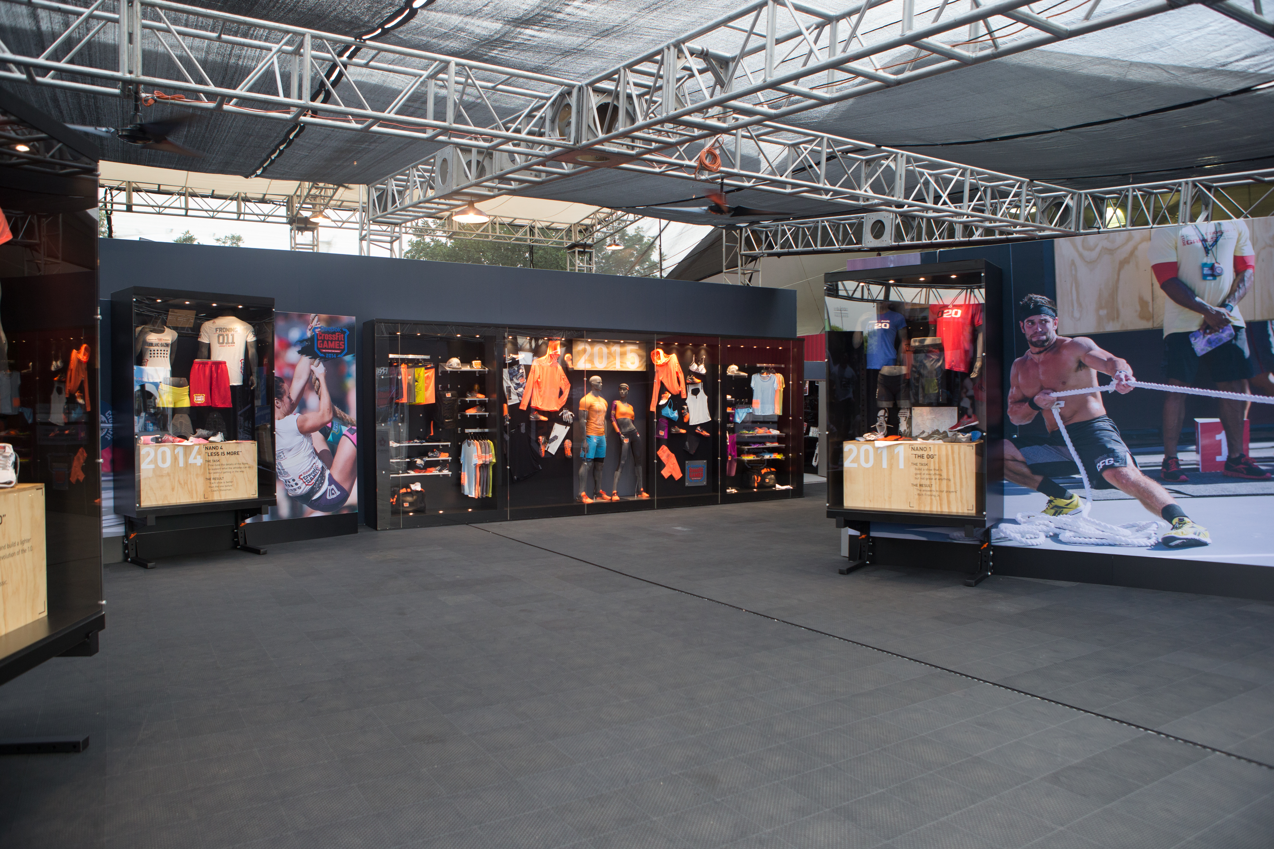 CrossFit Games Venues: Conceptual design. In-house team. 2014, 2015, and 2016. The goals of the CrossFit Games venues were simple: service the consumer through retail, provide a space for activation and demonstration, showcase the Brand’s commitment to the Athletes through the bespoke product design suite, and provide a chill space for Athletes.