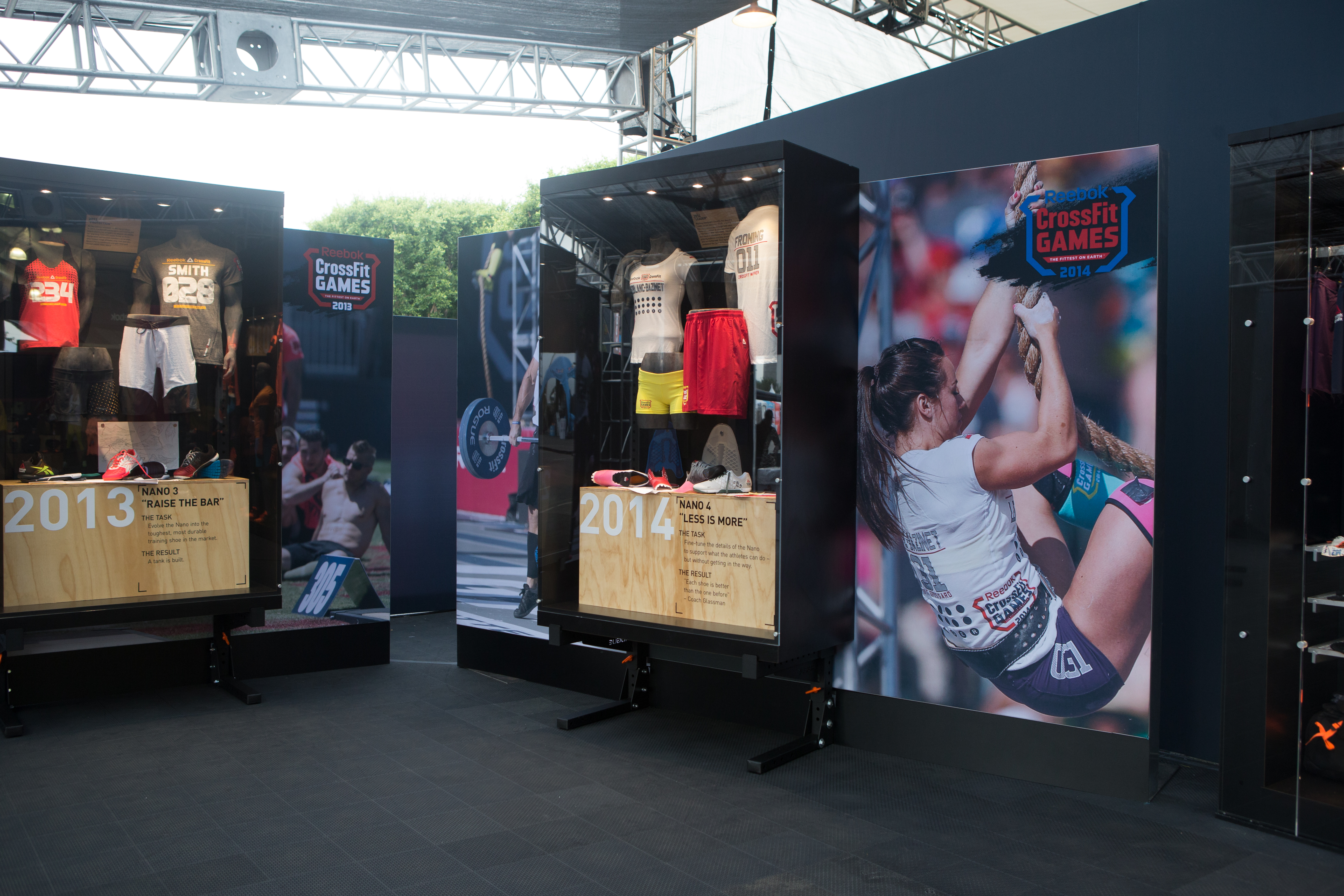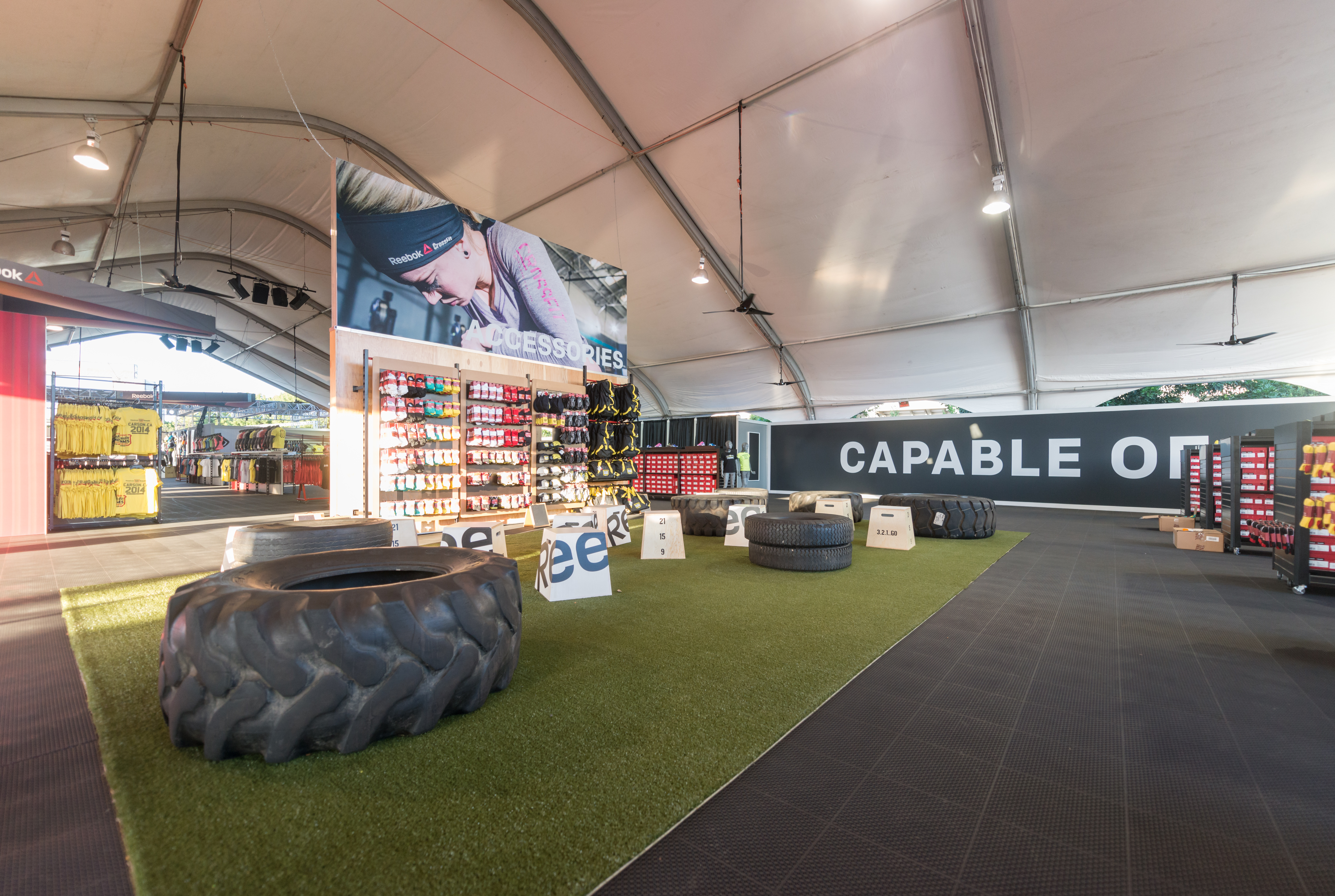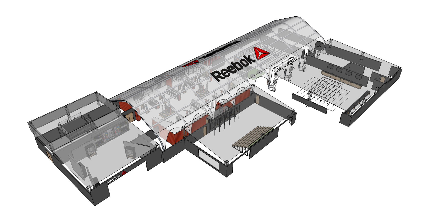CrossFit Games Venues: Conceptual design. In-house team. 2014, 2015, and 2016. The goals of the CrossFit Games venues were simple: service the consumer through retail, provide a space for activation and demonstration, showcase the Brand’s commitment to the Athletes through the bespoke product design suite, and provide a chill space for Athletes.