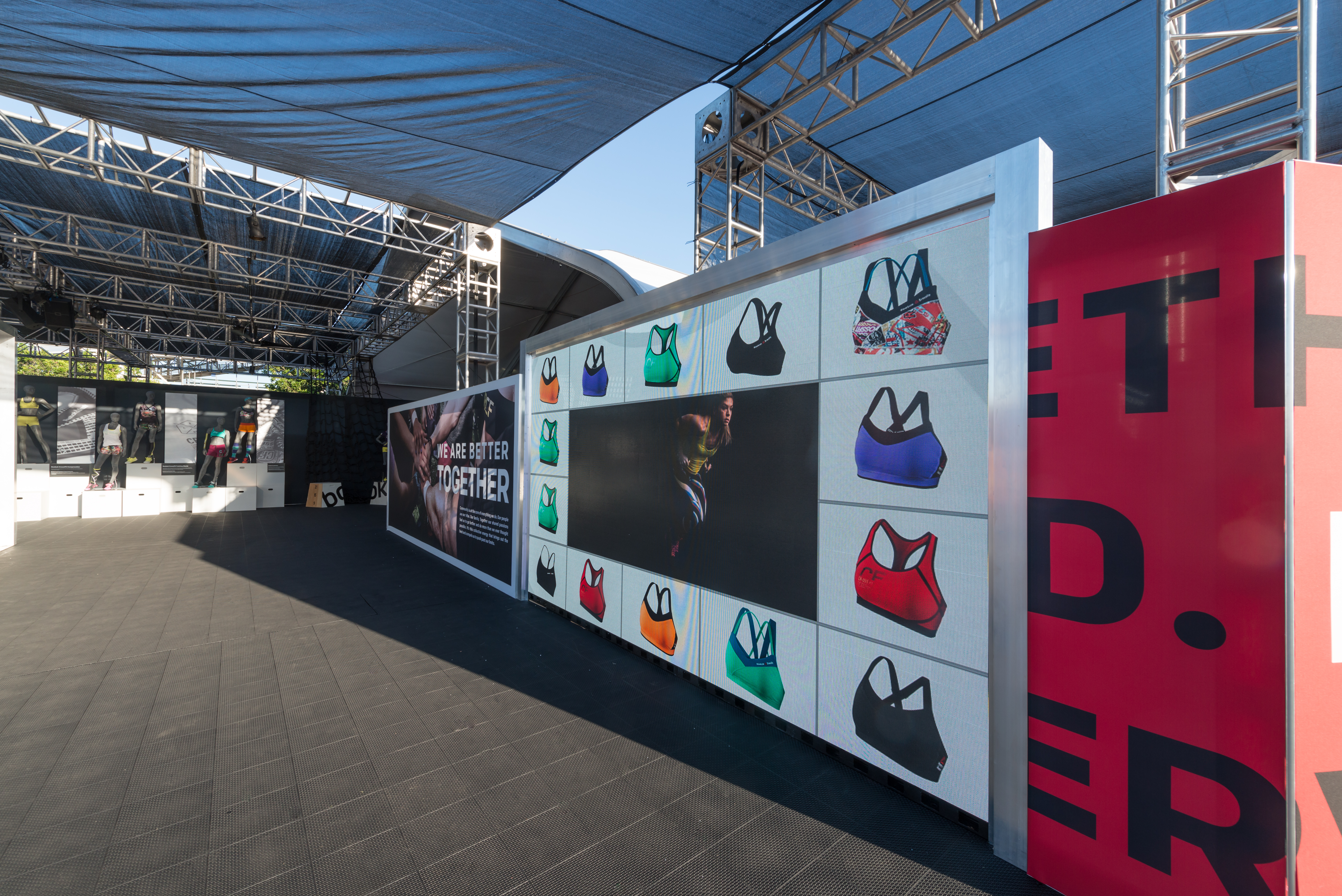 Over thirty thousand square feet was dedicated to the purposes of retail, showcase, activation, and service. Built over the course of 5 days, in action for 4 days. The skills and learnings that my team and I picked up in designing for the NFL Stadium stores were crucial in helping crowds be fully serviced in the multi-faceted environment we created. Thousands of spectators and athletes passed through the venues generating good will as well as financial gain for the Brand.