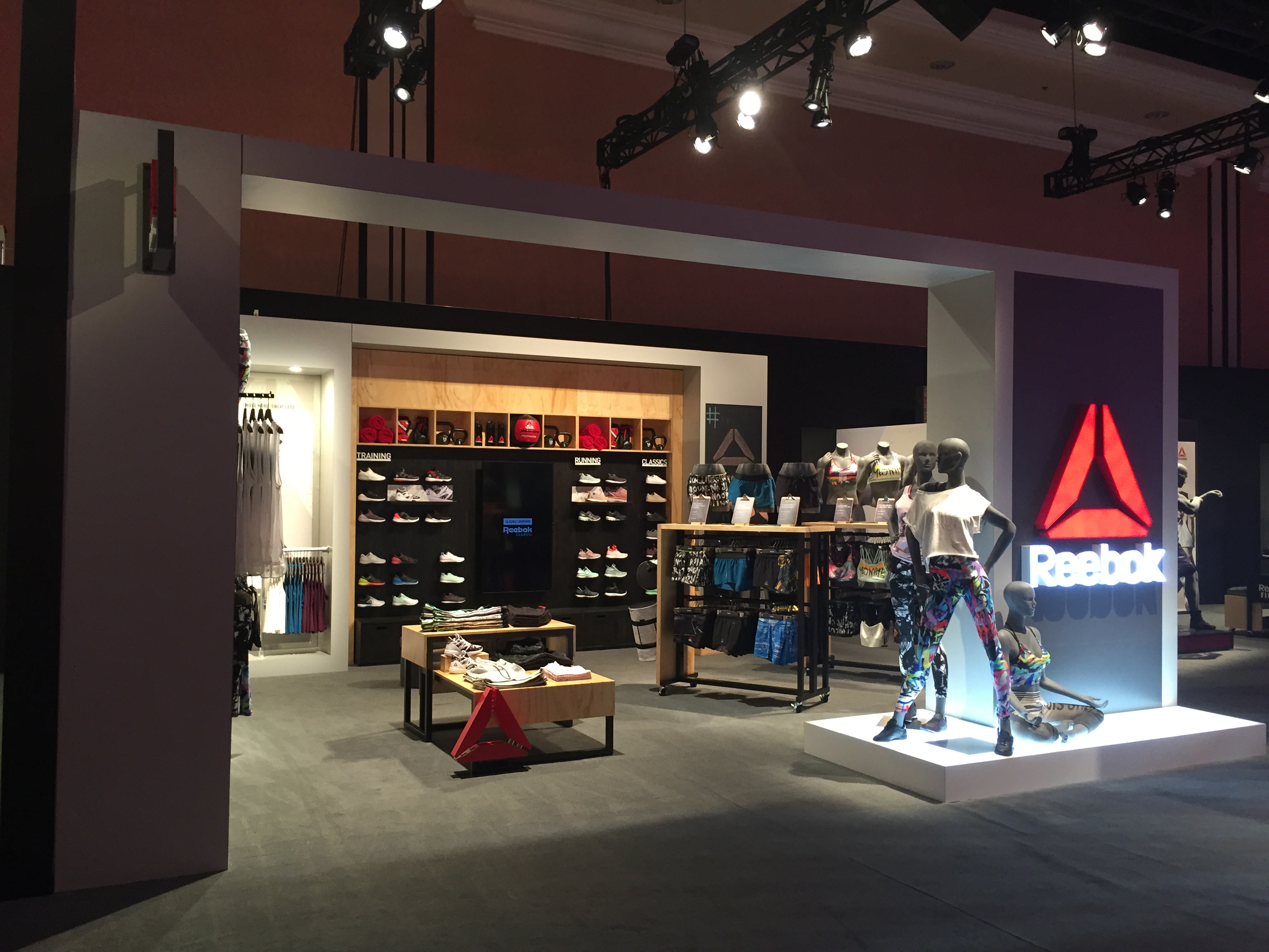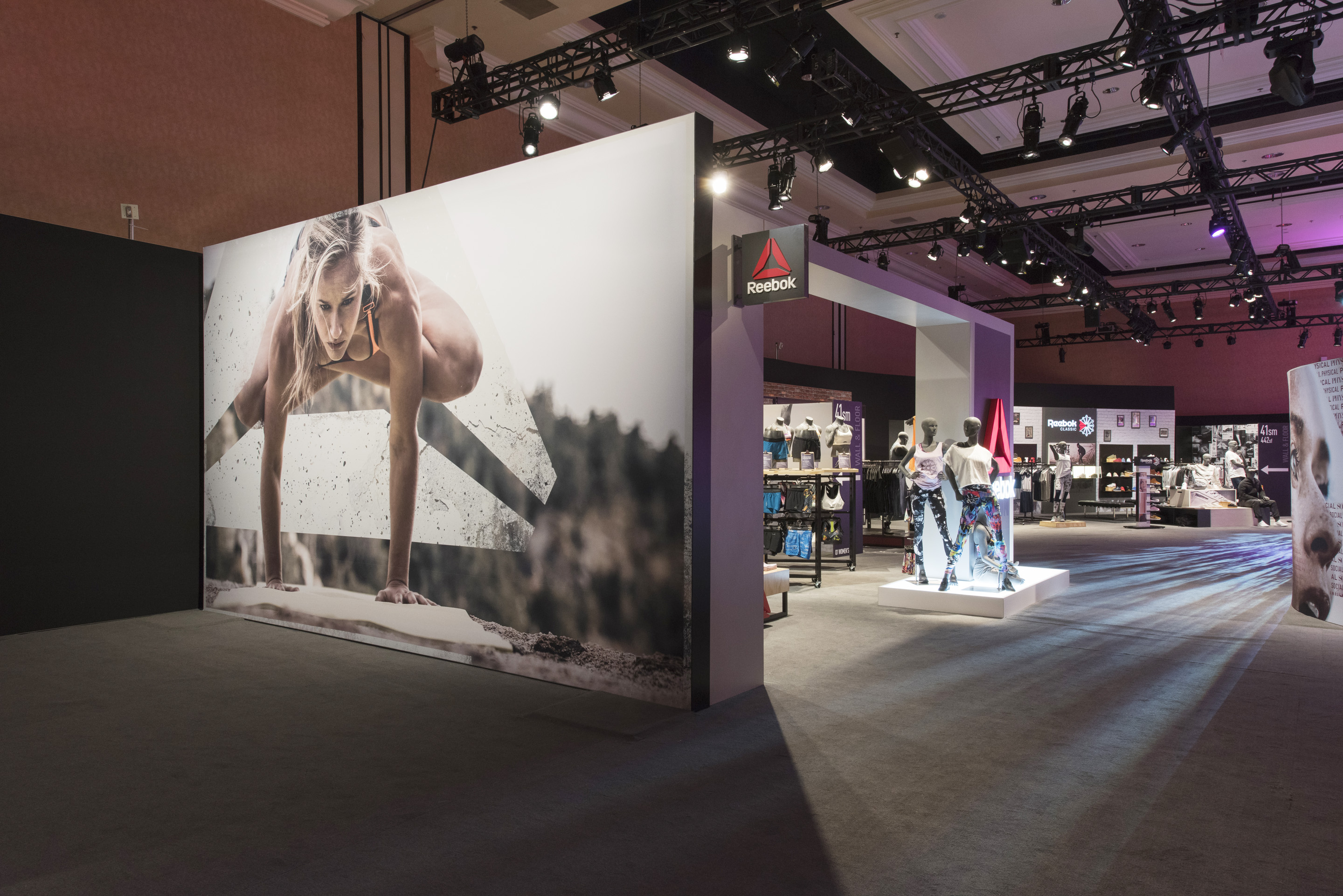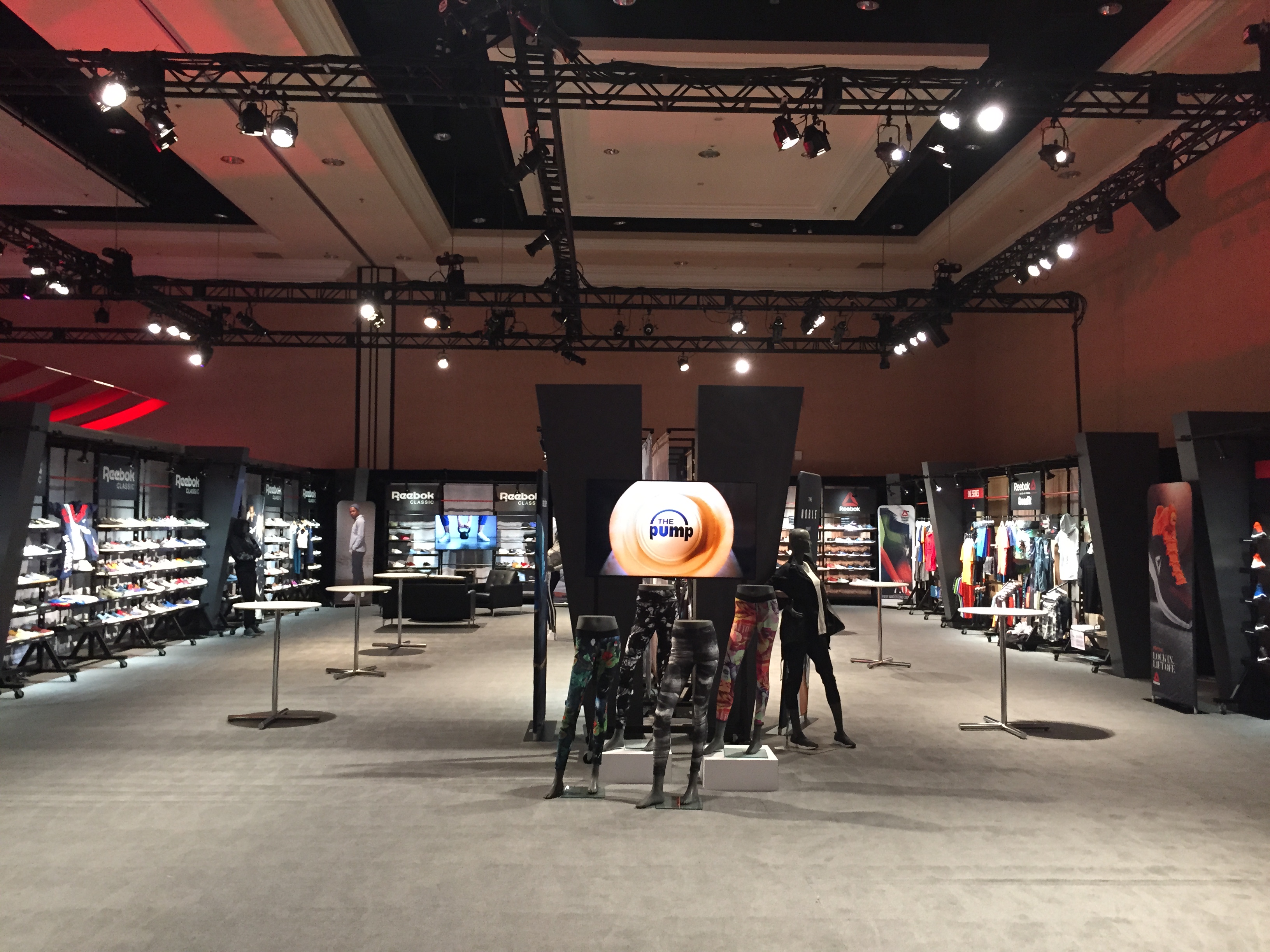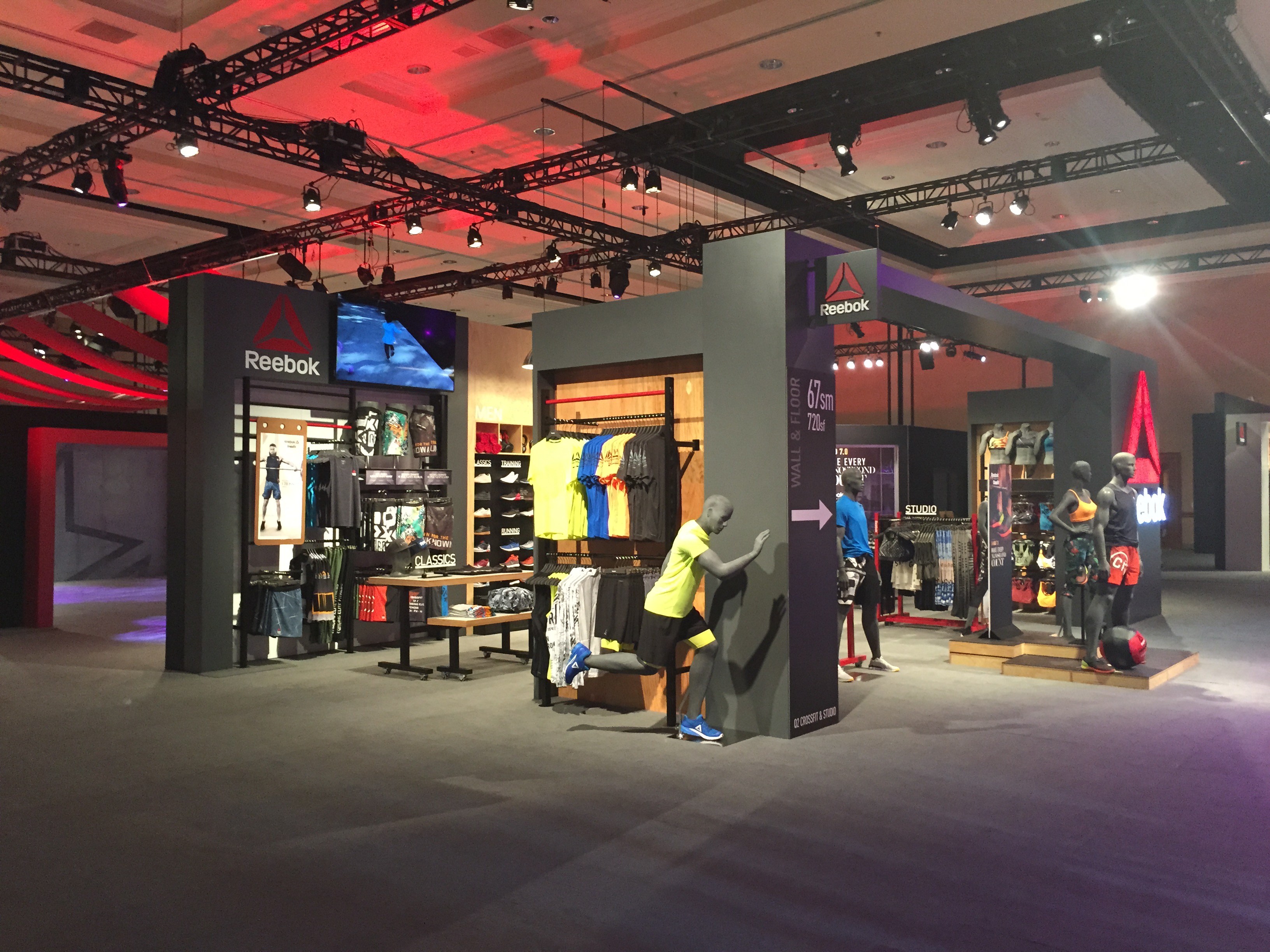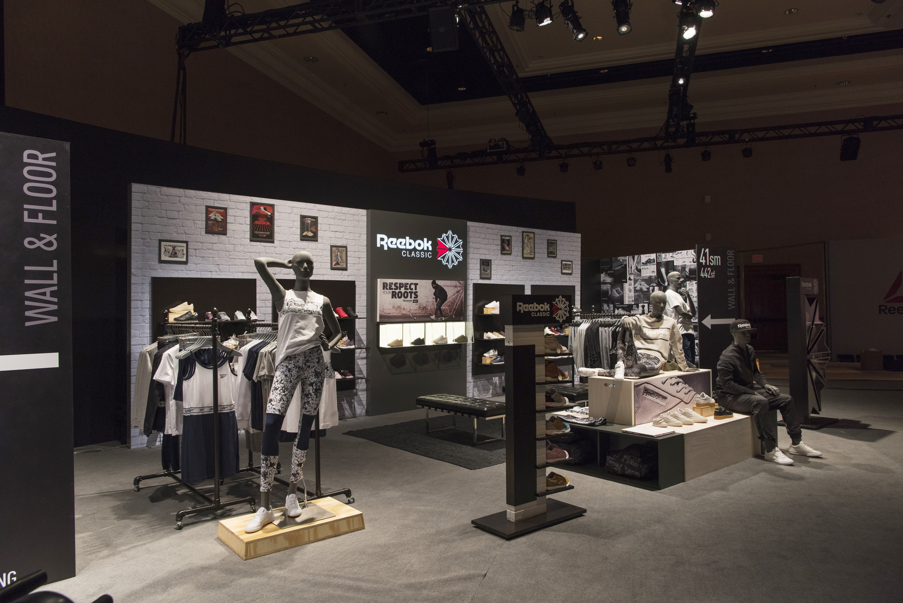 Reebok Retail Immersion Event Las Vegas: Conceptual Design. In-house Team 2016 The purpose of this internally facing global event was to present to global partners, retailers, franchisees and clients the power of the Brand. Entry into the over fifty thousand square foot exposition was through a Brand Gallery where future product and storytelling were exposed as a peek behind the curtain for marketing story of the following year. Full price retail experiences from 1200 square feet to 100 square feet were then fully built out and merchandised to every detail. Product showrooms that displayed focused, as well as broad, lines of apparel and footwear were crafted to couch product in clear display. Chill lounge/ meeting spaces were included to encourage comfortable discussion and encourage transaction.