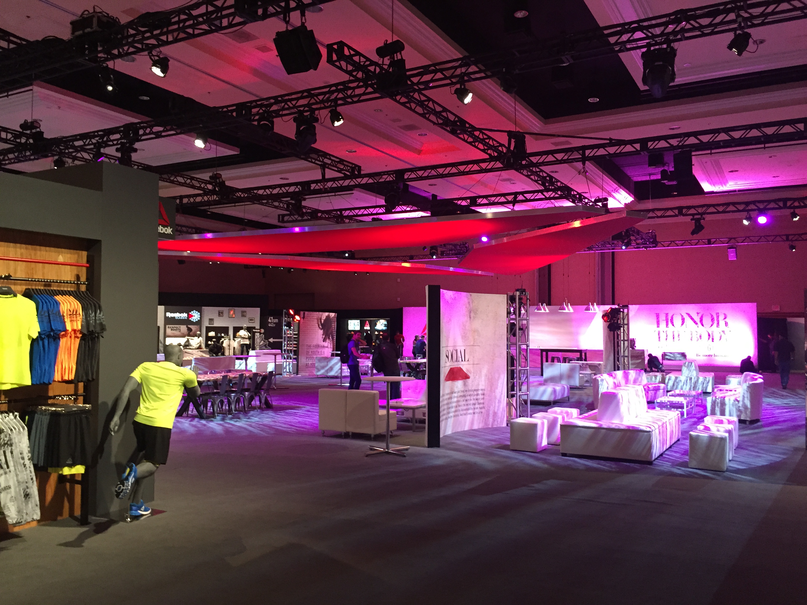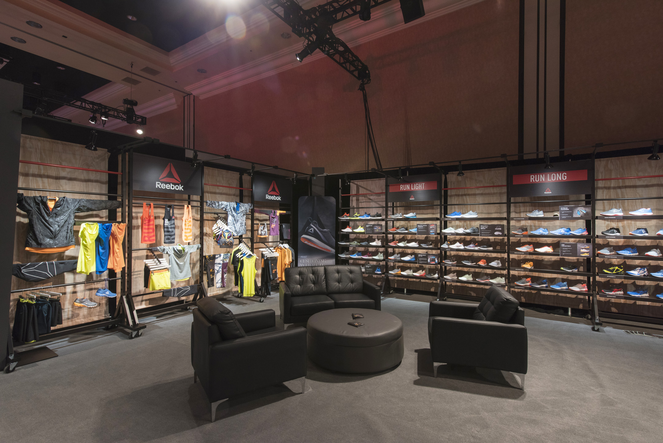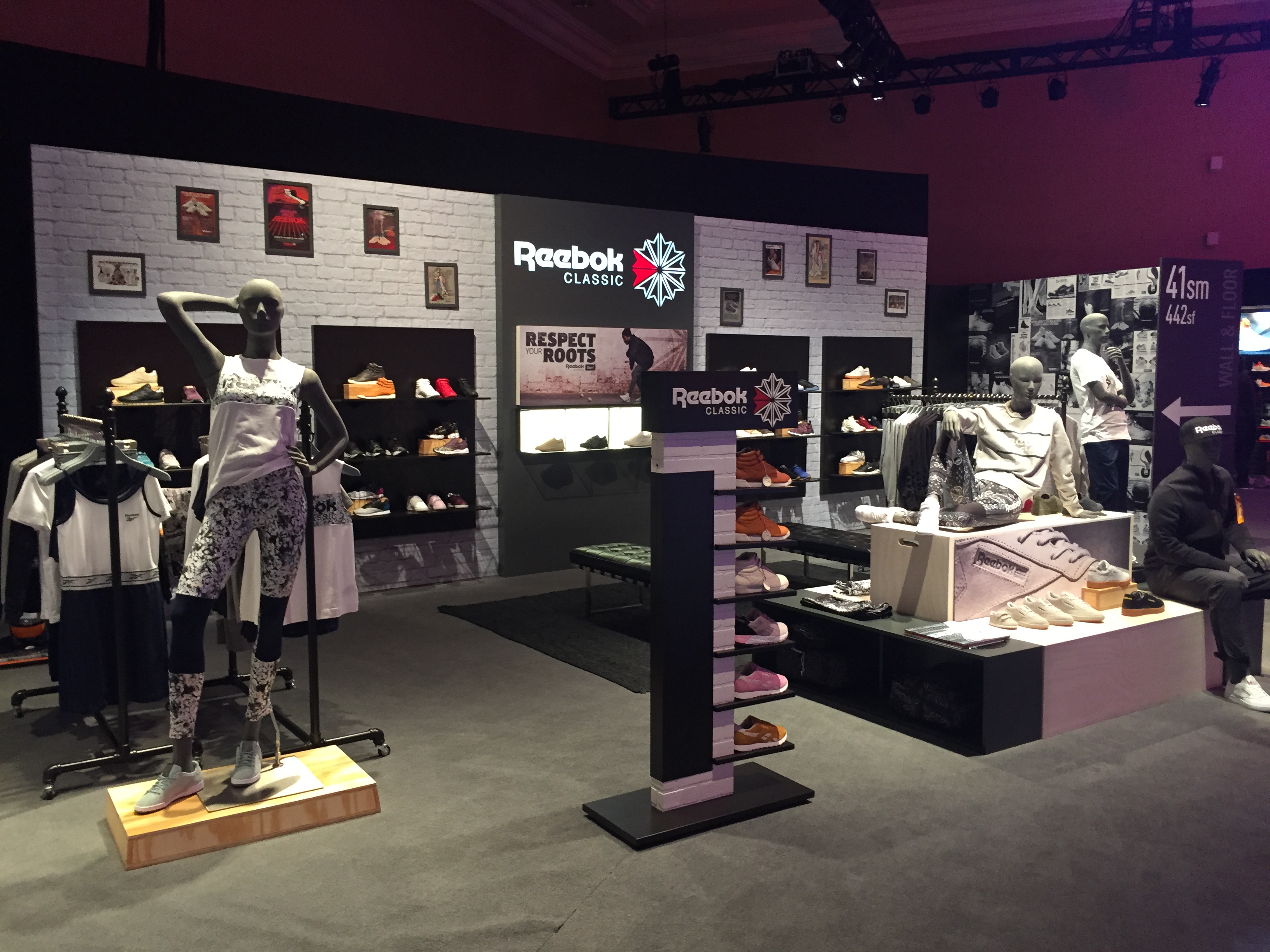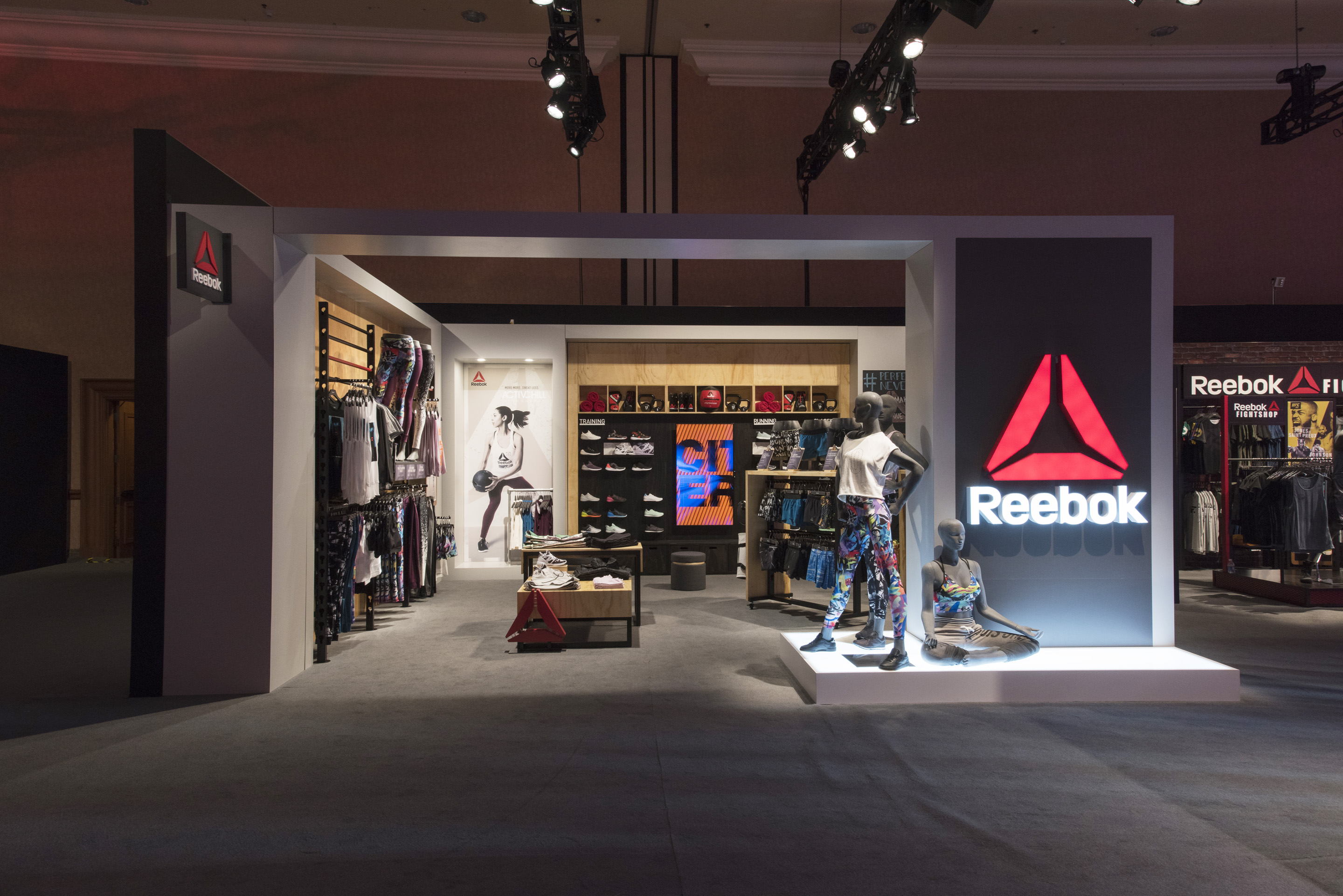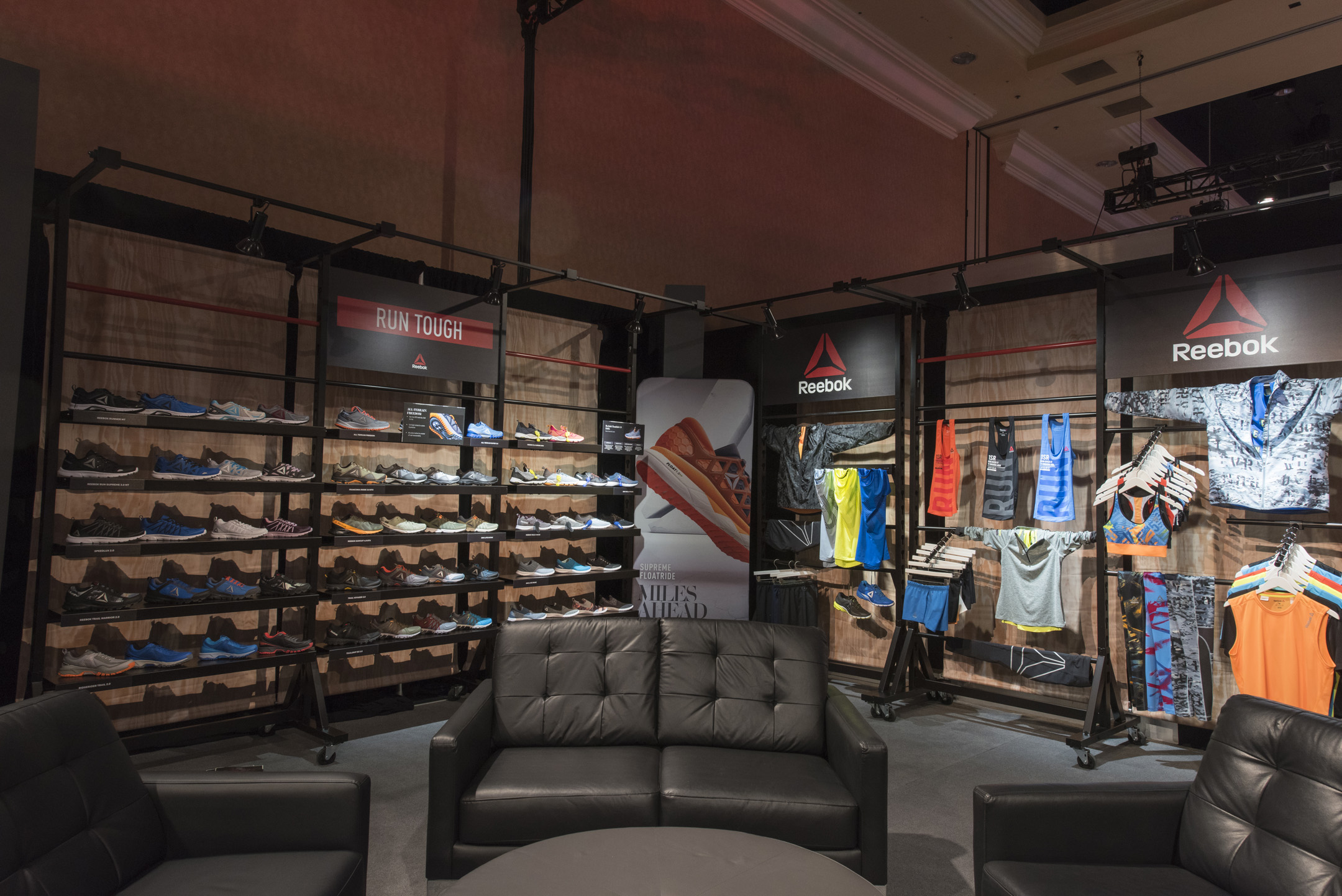 Reebok Retail Immersion Event Las Vegas: Conceptual Design. In-house Team 2016 The purpose of this internally facing global event was to present to global partners, retailers, franchisees and clients the power of the Brand. Entry into the over fifty thousand square foot exposition was through a Brand Gallery where future product and storytelling were exposed as a peek behind the curtain for marketing story of the following year. Full price retail experiences from 1200 square feet to 100 square feet were then fully built out and merchandised to every detail. Product showrooms that displayed focused, as well as broad, lines of apparel and footwear were crafted to couch product in clear display. Chill lounge/ meeting spaces were included to encourage comfortable discussion and encourage transaction.